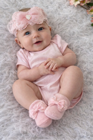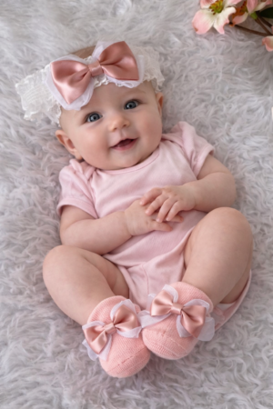 Satin Bow HairBand and Socks(0-6 Months)