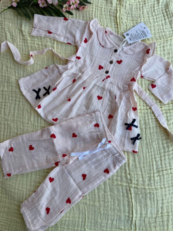 Dress your little one in adorable comfort with this charming heart-print top and pant set. Designed with soft, breathable fabric and a playful all-over heart pattern, this outfit is perfect for everyday wear as well as casual outings.