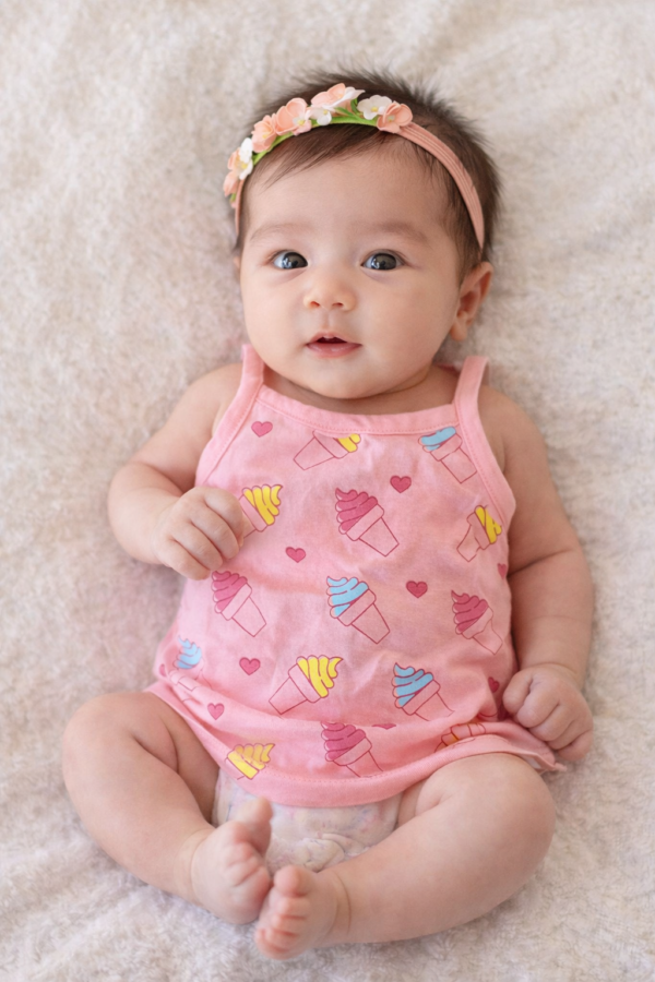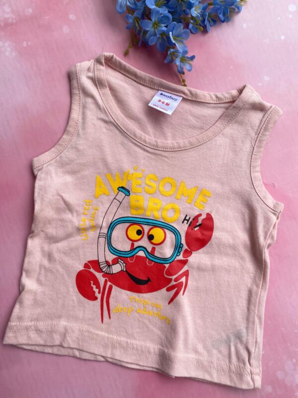 The sleeveless design allows easy movement and better airflow, making it ideal for warm weather and layering. With a relaxed fit and smooth stitching, these T-shirts ensure maximum comfort for your baby throughout the day.